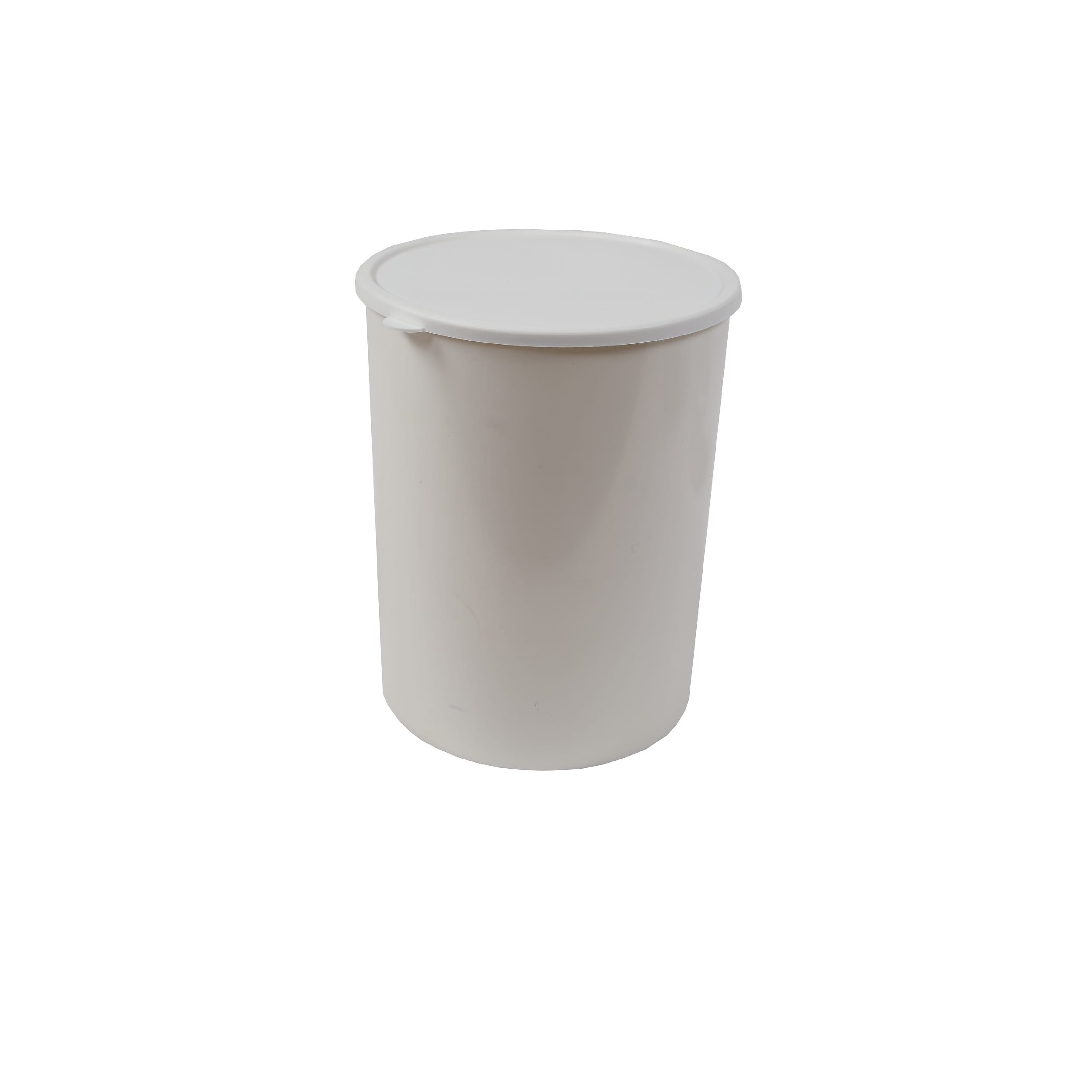 Lékárenský plastový kelímek s víčkem, o objemu 200 ml, vyrobený ze zdravotně nezávadných vstřikovaných plastů, (bylo určeno zejména pro farmaceutický průmysl). Dlouhodobě uložené zboží.