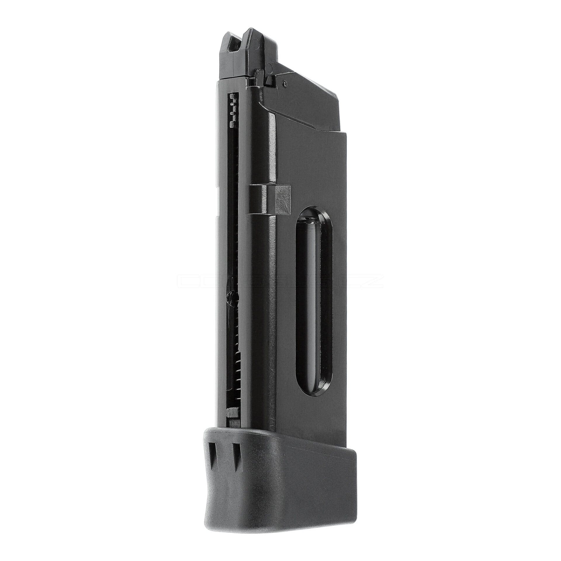 Kovový zásobník má vpředu přihrádku pro ocelové BB střelivo 4,5 mm, které