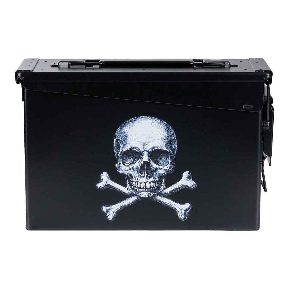 Muniční bedna s potiskem. Ocelová konstrukce. Rozměry 27,6 x 9,6 x 17,9 cm. Další informace