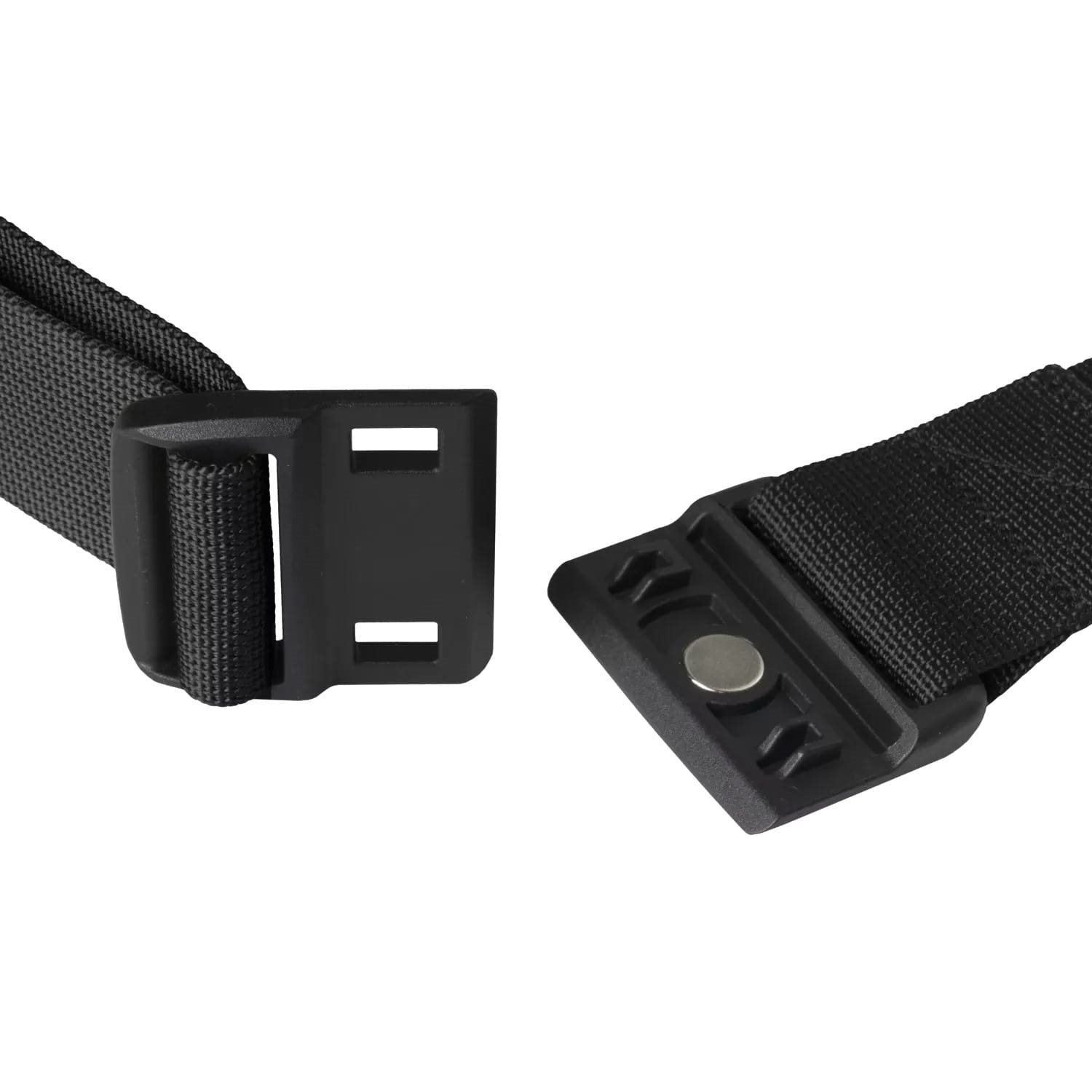 Taktický opasek využívající k zapínání magnetickou přezku vytvořenou renomovanou značkou Woojin. Přezka má nízký profil, nabízí tak vysokou míru komfortu a nijak nepřekáží při dynamickém pohybu. Popruh opasku je vyrobený z měkkého, 38 mm širokého nylonu, na který není problém připevnit základní EDC vybavení, pouzdra, lékárničky či sumky.
