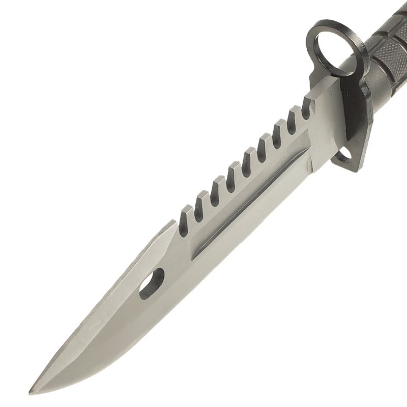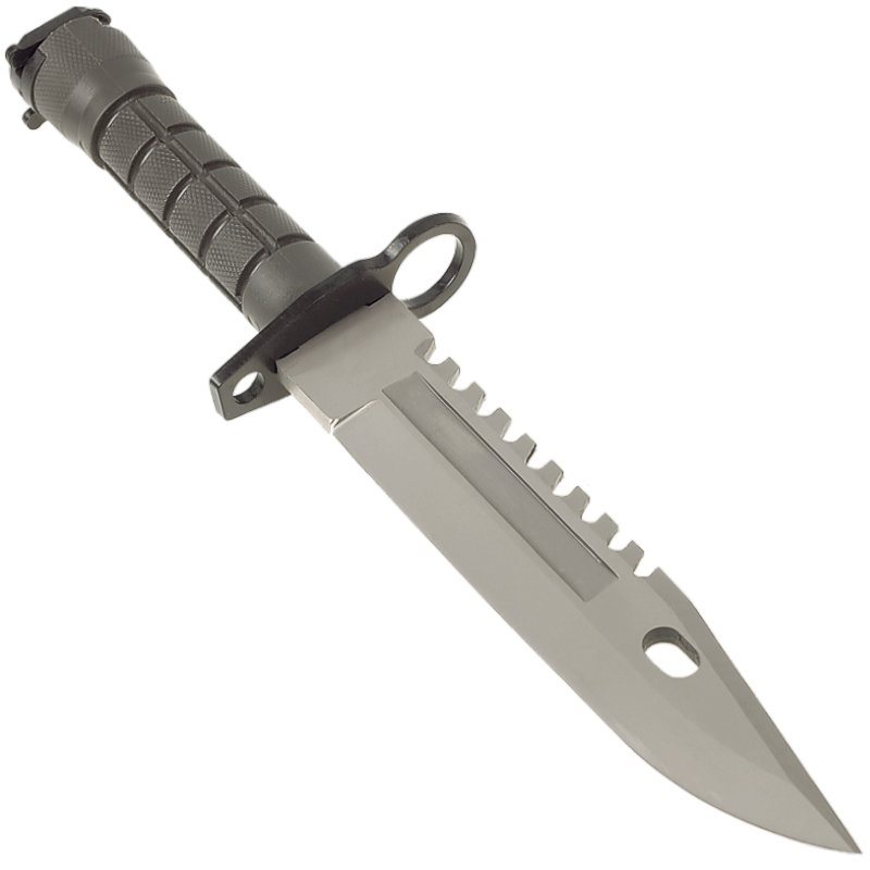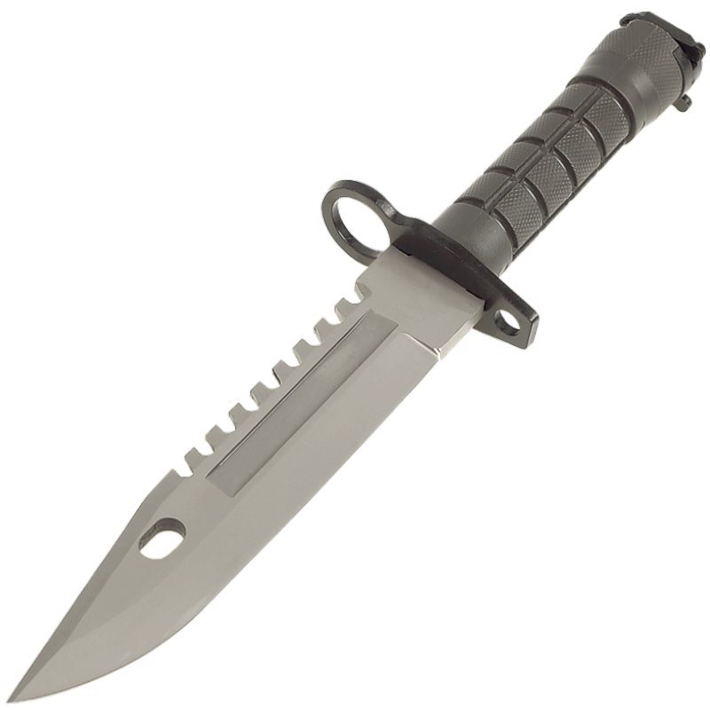 Robustní bajonet vyrobený dle klasické předlohy, která do služby v americké armádě vstoupila v roce 1986. Stejně jako předloha, i tento nůž disponuje robustní konstrukcí vhodnou pro celou řadu úkonů. Čepel nože s hladkým ostřím je vyrobená z houževnaté nerezové oceli 420, přičemž na jejím hřbetě naleznete pilku a v přední části otvor sloužící v kombinaci s pouzdrem ke štípání drátů. Kovová záštita nože slouží nejen k fixaci nože na útočnou pušku, ale i k ochraně ruky při práci. Rukojeť je vyrobená z tvrzeného plastu s protiskluzovou texturou zajišťující pevný úchop ve všech podmínkách. K noži je dodáváno robustní opaskové pouzdro s pevnou plastovou přezkou.