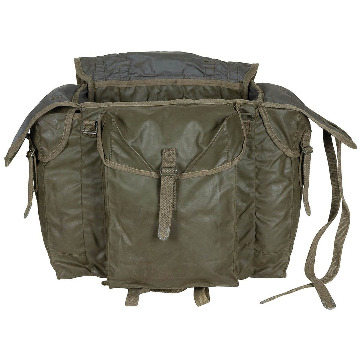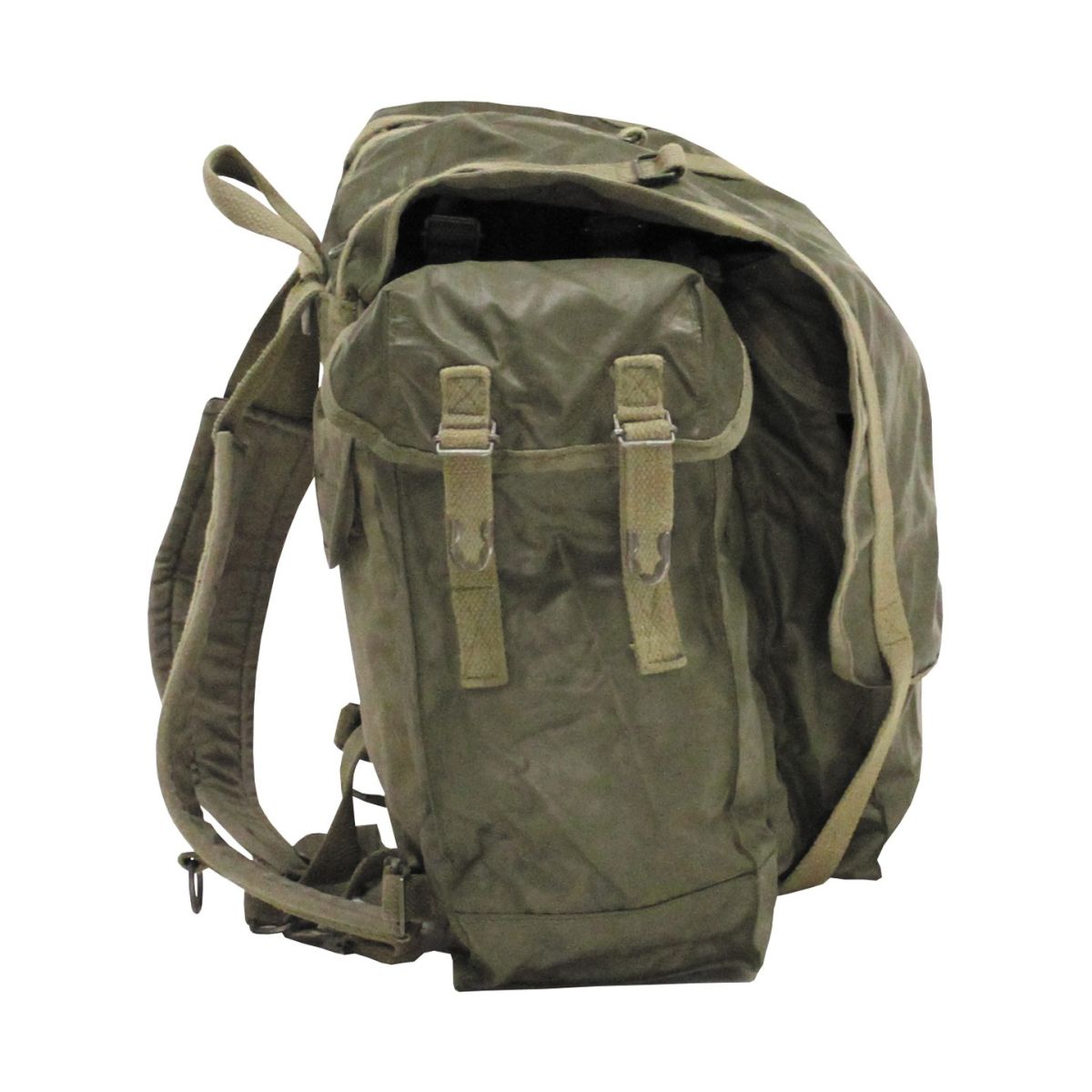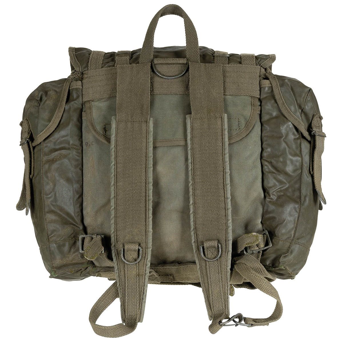 Originální ruksak francouzské armády, model: F1, malý - použitý. Pryžové dno, boky a víko pogumované. Množství poutek a poruhů k uchycení výstroje. Rozměry 33x28x8 cm . Materiál: 100% bavlna. Další informace