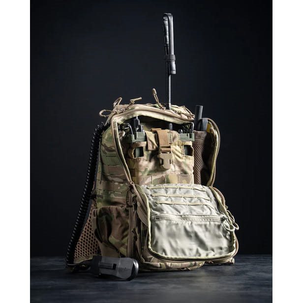 Přístup do hlavní komory je skrze čtyřcestný zip, který umožňuje snadné vyvedení antén či kabelů. Uvnitř se nachází další modulární vazba, tentokrát kombinovaná se suchým zipem pro umístění pouzder i insertů. Boky hlavní komory jsou osazené zdvojenými kapsami pro užší podlouhlé předměty a vybavení. Chlopeň komory disponuje na vnitřní straně menší plochou kapsou přístupnou skrze zip. Celá hlavní komora je koncipovaná tak, aby bez problémů pojmula radiostanice typu PRC117 včetně ochranného pouzdra. Za hlavní komorou se nachází rozměrná kapsa určená pro integraci hydratačního vaku.