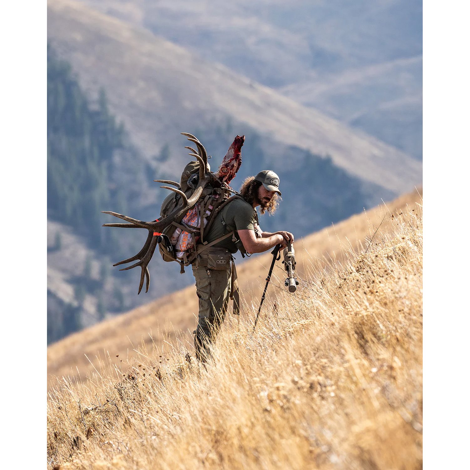 Hliníkový nosný systém je tvarovaný pro maximální oporu zad. V případě potřeby je možné batoh celý odejmout a zádový systém používat samostatně, či v kombinaci s dalším kompatibilním příslušenstvím z produktové řady EMOD HUNT od značky EBERLESTOCK. Ramenní popruhy jsou opatřené stabilizačními dorazy, elastickým hrudním popruhem a je možné je výškově nastavit dle potřeb uživatele. Bederák disponuje opravdu masivním polštářkem pokrytým silikonem, který zabraňuje nechtěnému klouzání batohu při dynamickém pohybu. Boky bederáku jsou také silně polstrované a spínají se pomocí robustní plastové přezky.