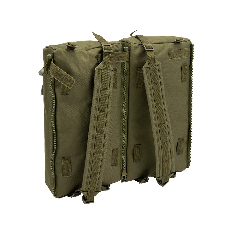 Boční kapsy je možné odejmout, propojit a vytvořit z nich samostatný batoh. Nechybí ani MOLLE/PALS vazba pro připevnění kompatibilních sumek a doplňků. Spodní část batohu je navíc vybavena zipem, díky kterému ji lze jednoduše otevřít a získat rychlý přístup k obsahu.