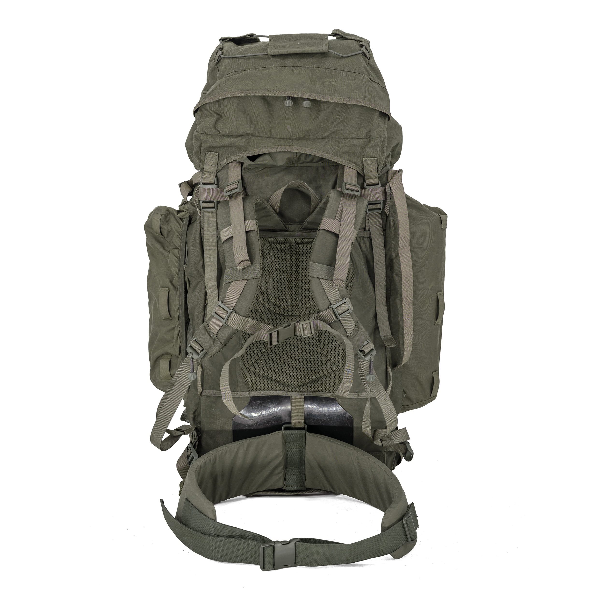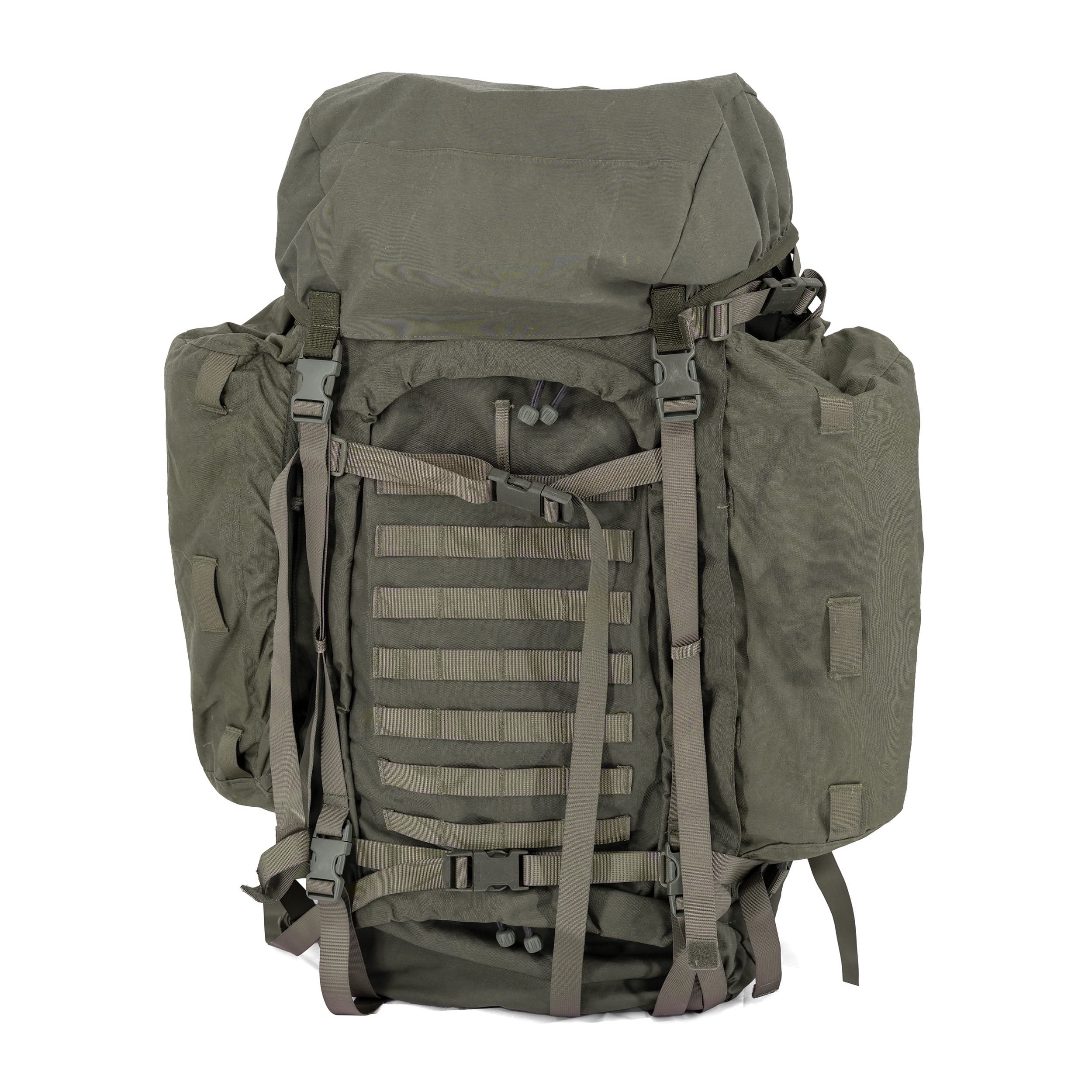 Velký armádní batoh (určený pro mise. Batoh má super pohodlný nosný systém, který poskytuje optimální pohodlí i při těžkém nákladu. Batoh je držen relativně nízko, aby těžiště bylo blízko těla. Pevný otvor pro hlavu a výřez v horní části zad zajišťují, že si můžete hlavu při nošení batohu zaklonit.