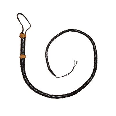 Pletený bič, celý vyrobený z kůže, koncová tkanice je textilní. Celková délka 150 cm. Další informace