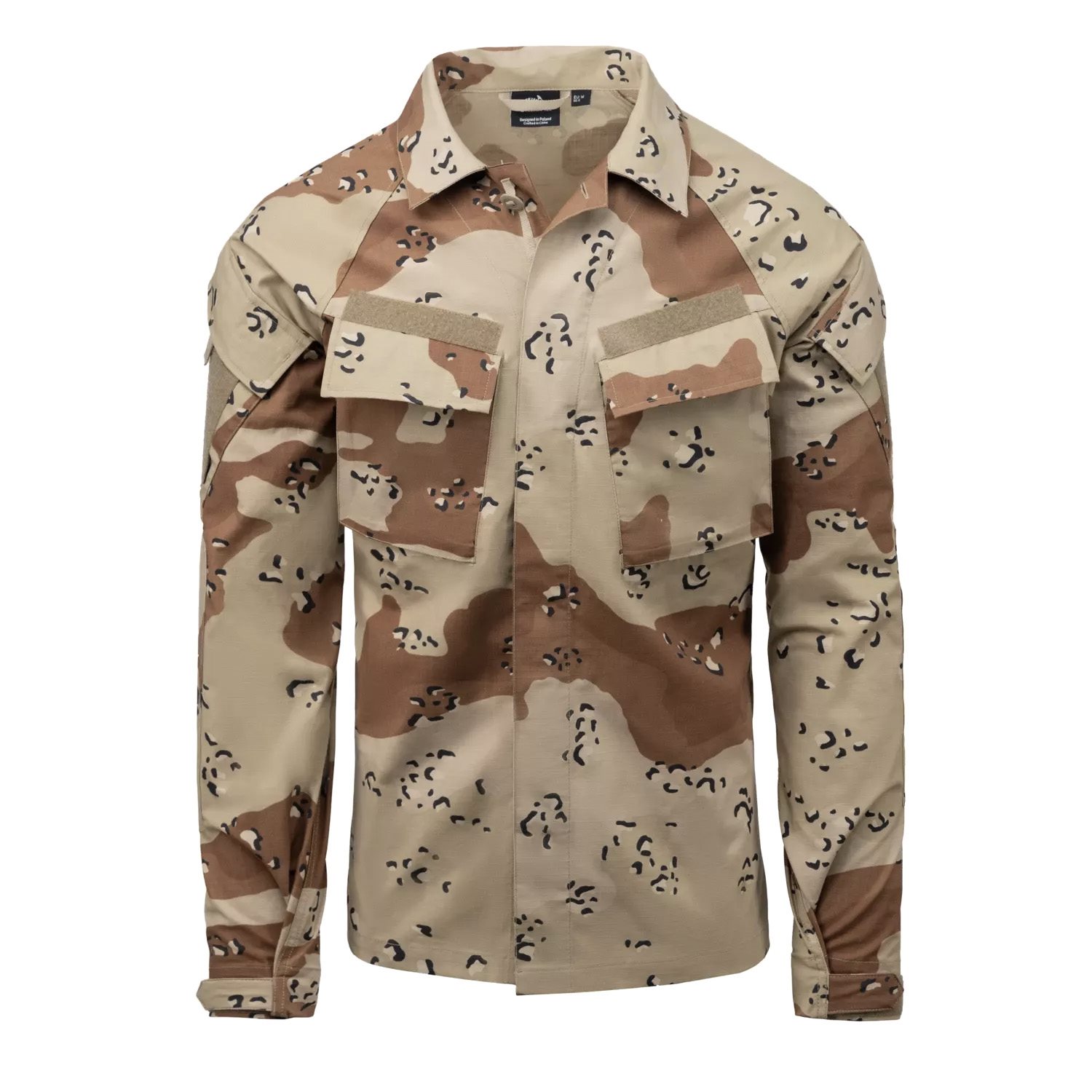 Moderní varianta dnes již legendární blůzy BDU. Je perfektní volbou pro nošení s kalhotami UTP, SFU Mk2 či BDU Mk2, skvěle ale poslouží i sama o sobě jako lehoučká svrchní vrstva do města i přírody. Na její výrobu byl použit směsný materiál o poměru 50% polyester, 48% bavlna, 2% elastan. Díky použití elastanu je materiál mírně strečový, a neomezuje tak svobodu pohybu ani během dynamické akce. Další příjemnou výhodou blůzy je použití raglánových rukávů. Ty jsou našity přímo do límce, takže na ramenou nenaleznete žádné švy, které by tlačili při nošení blůzy pod nosičem plátů.