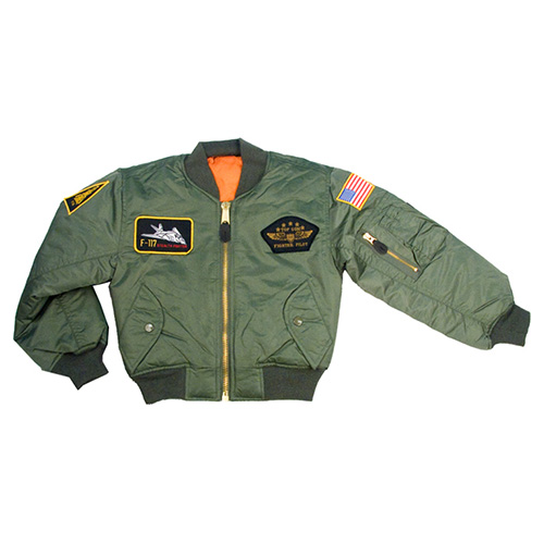 Dětská pilotní bunda typu Bomber ve stylu Top Gun, se stylovými nášivkami. Další informace