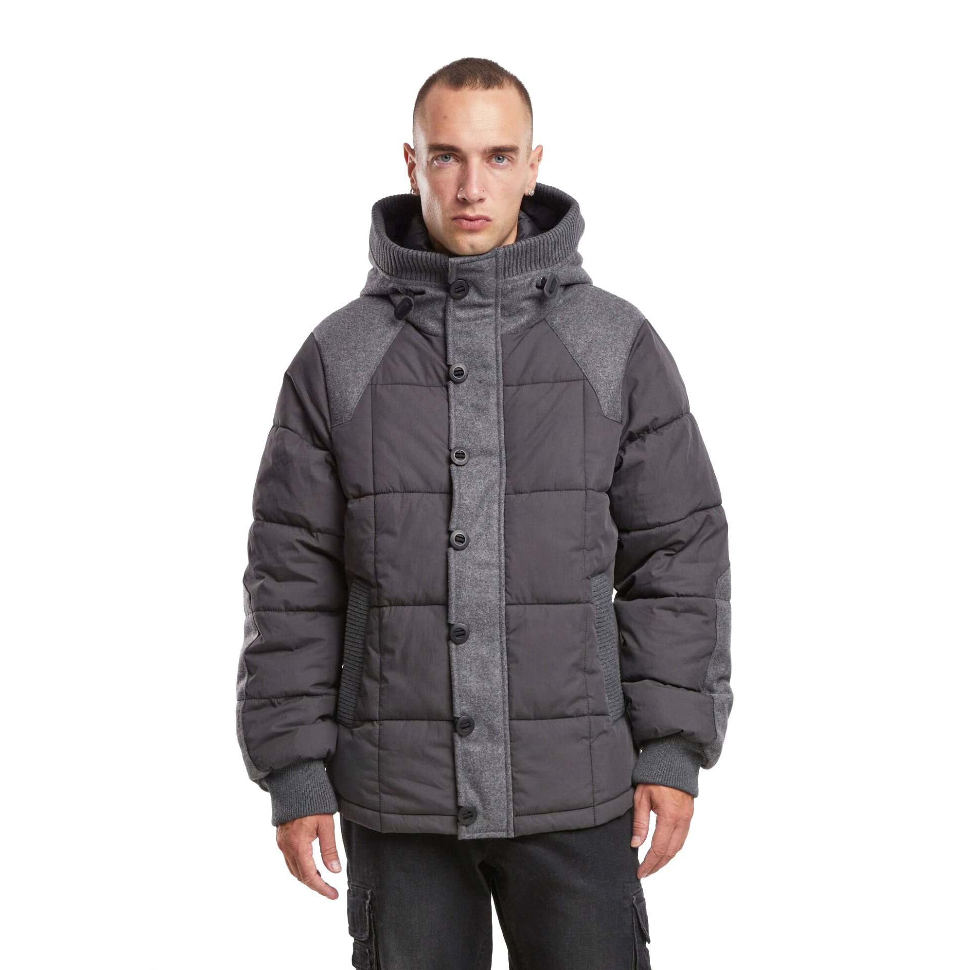 Hřejivá prošívaná bunda s kontrastními vlněnými panely pro netradiční prémiový vzhled. Další informace