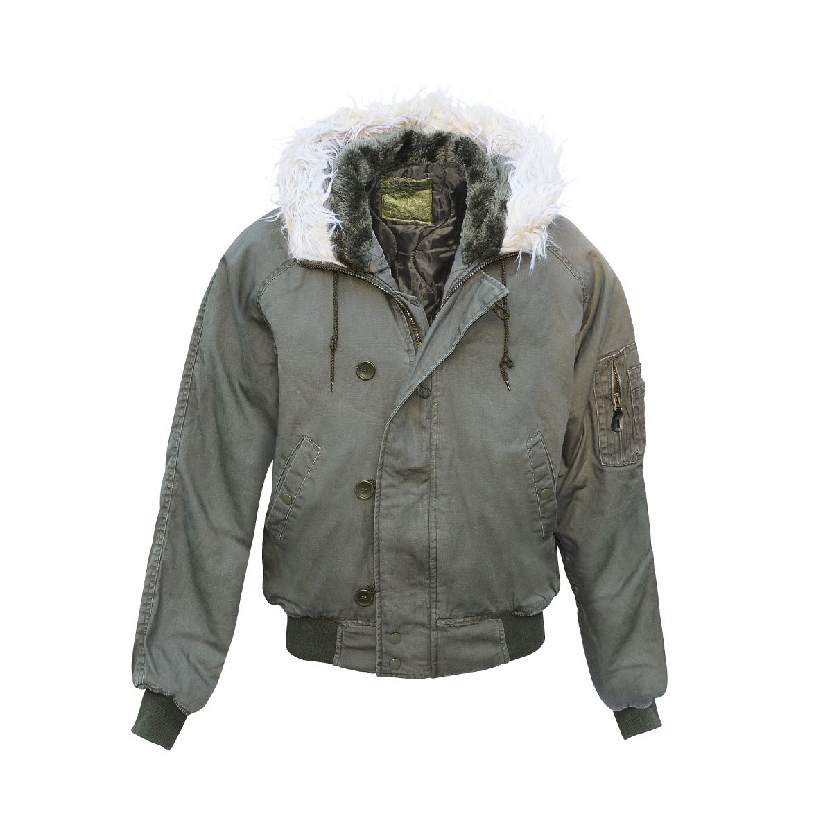 Bunda pilotní aljaška N-2B VINTAGE s kapucí ZELENÁ