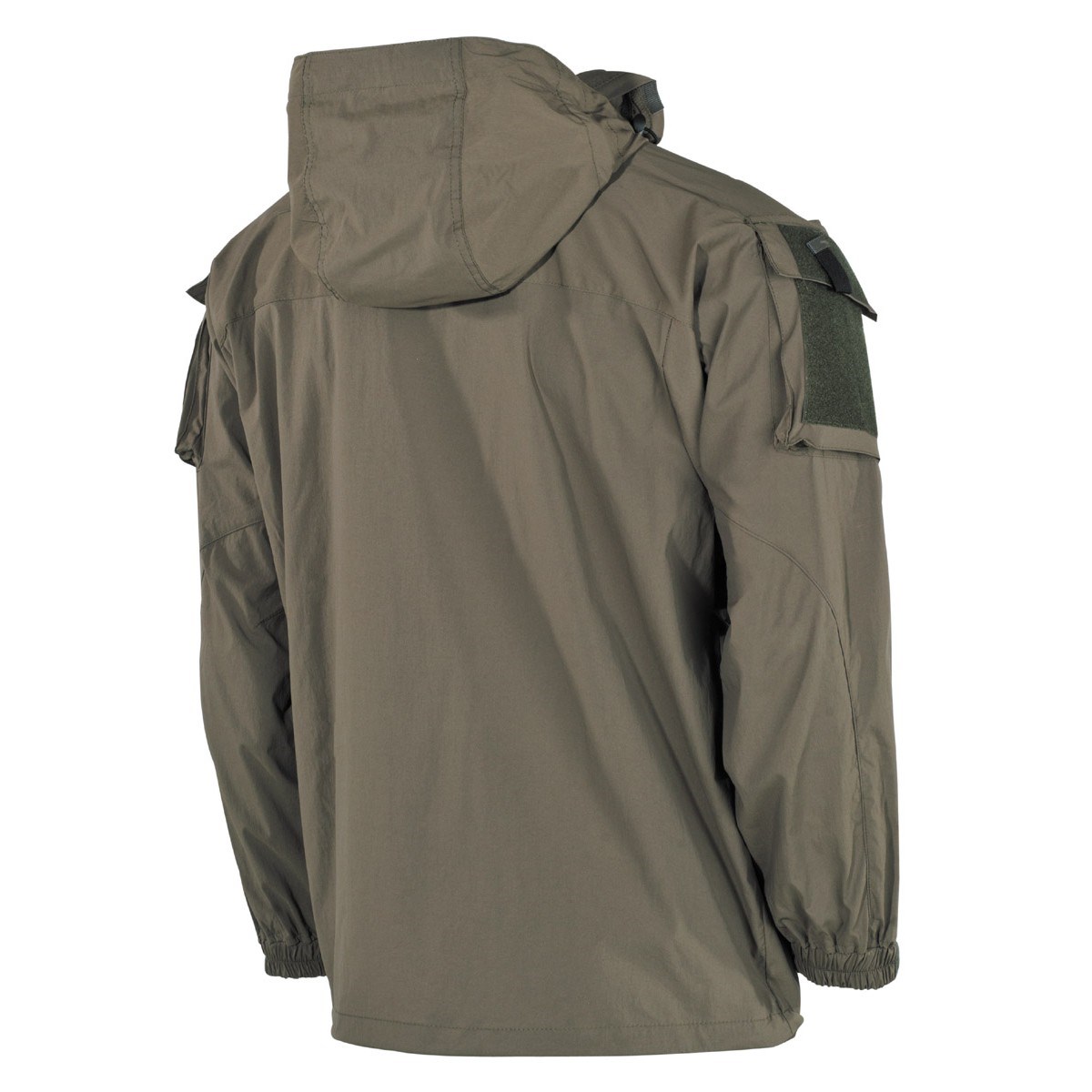 Nepromokavá, větruodolná a prodyšná nylonová bunda ve stylu PCU (Protective Combat Uniform) s kapucí. Další informace