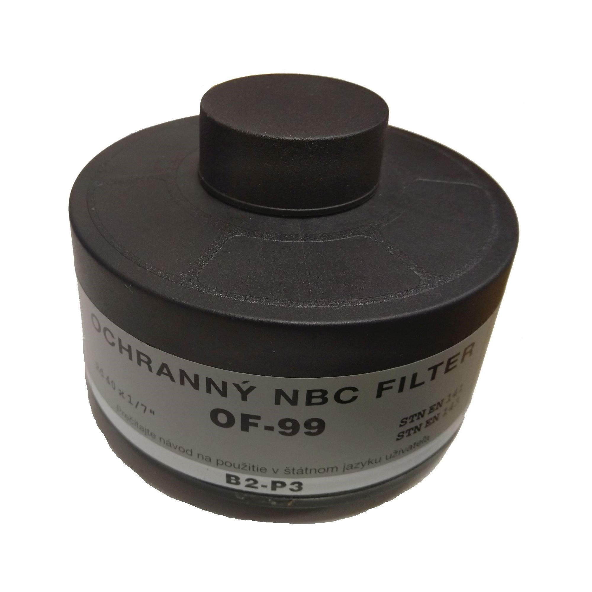 Filtr OF-99 pro plynovou masku. Závit 40 x 1/7". Prošlá expirace - bez jakékoli záruky funkčnosti. Další informace