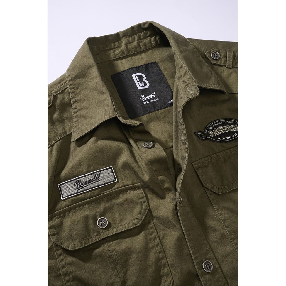 Pohodlná košile příjemného volnočasového střihu. Je vyrobená z měkké bavlny lehce opraného vzhledu. Zapíná se pomocí klasických knoflíků a na její hrudi naleznete dvě kapsy uzavírané pomocí chlopní s knoflíky. Vzhled košile je doplněný o tři nášivky. Další informace