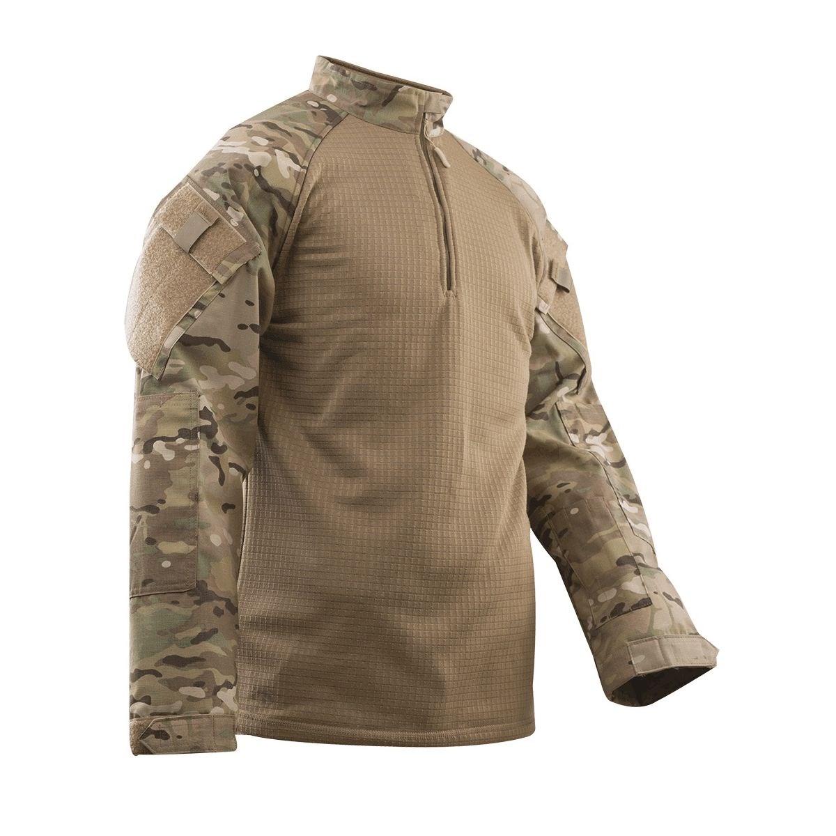 Taktická košile od firmy Tru-Spec. Rukávy a ramena jsou 65 % polyester/35 % bavlna rip-stop, trup 93 % polyester/7 % spandex. Další informace