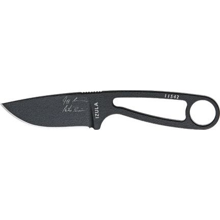 Izula je lehký a kompaktní nůž tvořený jedním kusem uhlíkové oceli 1095 s čepelí s plochým výbrusem o tvrdosti 55-57 HRC. Proti korozi i nechtěným odleskům je chráněná matným práškovým lakem. Oproti standardní verzi nese čepel podpisy zakladatelů firmy ESEE - Jeff Randall a Mike Perrin. Skeletová rukojeť s kroužkem na prst umožňuje opletení šňůrou, nasazení doplňkových střenek (nejsou součástí balení) nebo přicvaknutí na karabinu. Nůž je dodáván s plastovým samosvorným pouzdrem s odnímatelnou destičkou s opaskovým klipem. Nůž je možné nosit horizontálně i vertikálně, otočený pro praváka i leváka. Díky několika otvorům v pouzdru se nabízí také možnost zavěšení na výstroj pomocí karabinky či provlečení šňůry pro nošení na krku.
