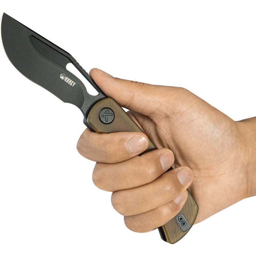 Stylový zavírací nůž s čepelí tvarem připomínající nůž kukri. Další informace
