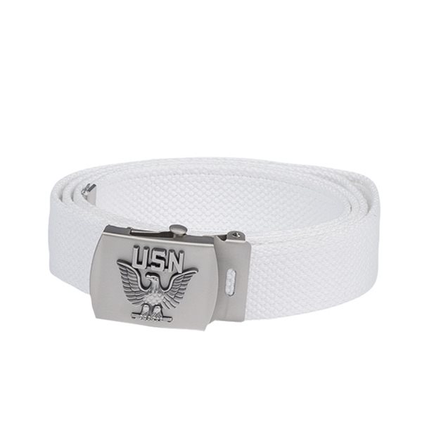 Kalhotový opasek se sponou stříbrné barvy s vyraženým znakem námořnictva USN (US NAVY).