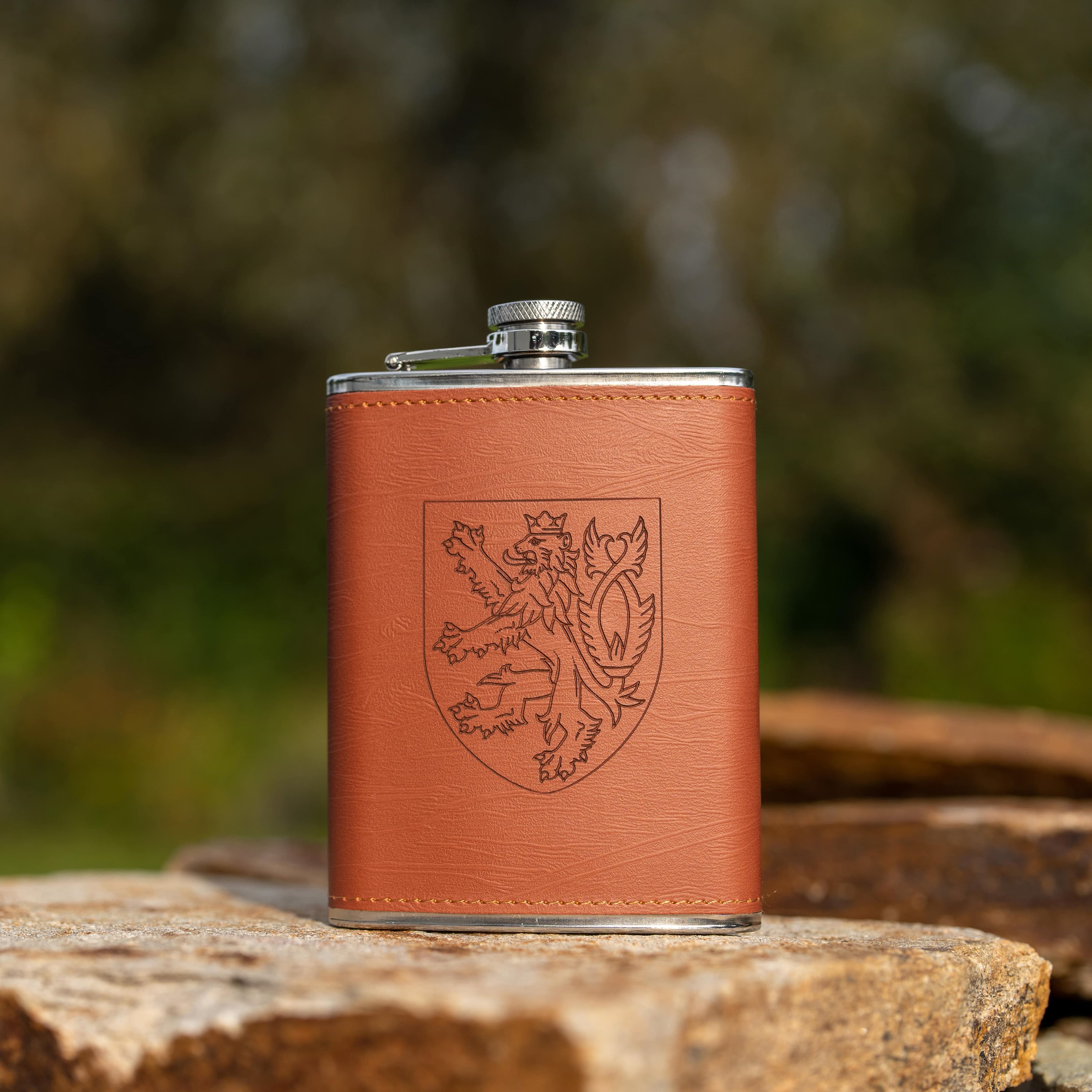 Stylová placatka s vyobrazením českého lva, která je díky praktické krabičce ideálním dárkem. Placatka je vyrobena z nerezové oceli a koženky. Dodávána se dvěma panáky a nálevkou. Další informace