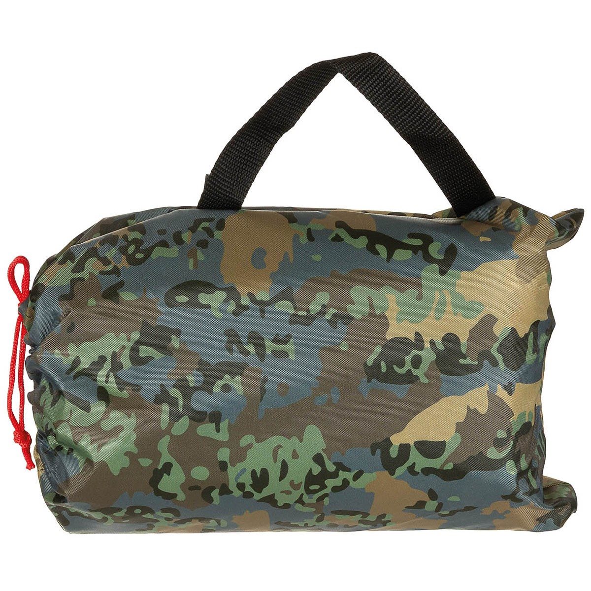 Nepromokavá plachta v rakouském maskovacím vzoru 03 o rozměrech 300 x 300 cm, která je dodávaná v přepravním pytlíku, je skladná a lehká (hmotnost 550 gramů). Materiál: 100 % polyester s 190T PU potahem. Další informace