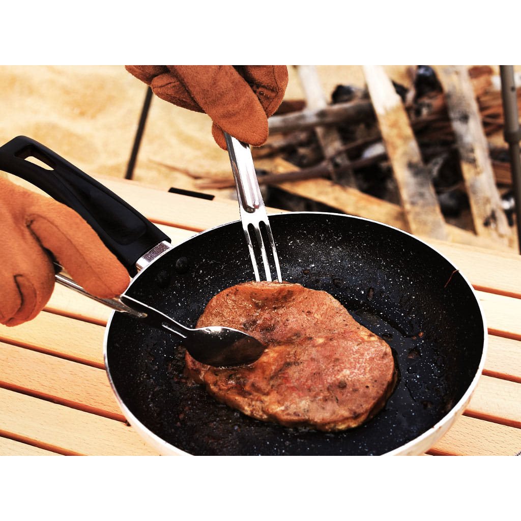 Kompaktní dvoudílný nerezový příbor s možností snadného složení. Další informace