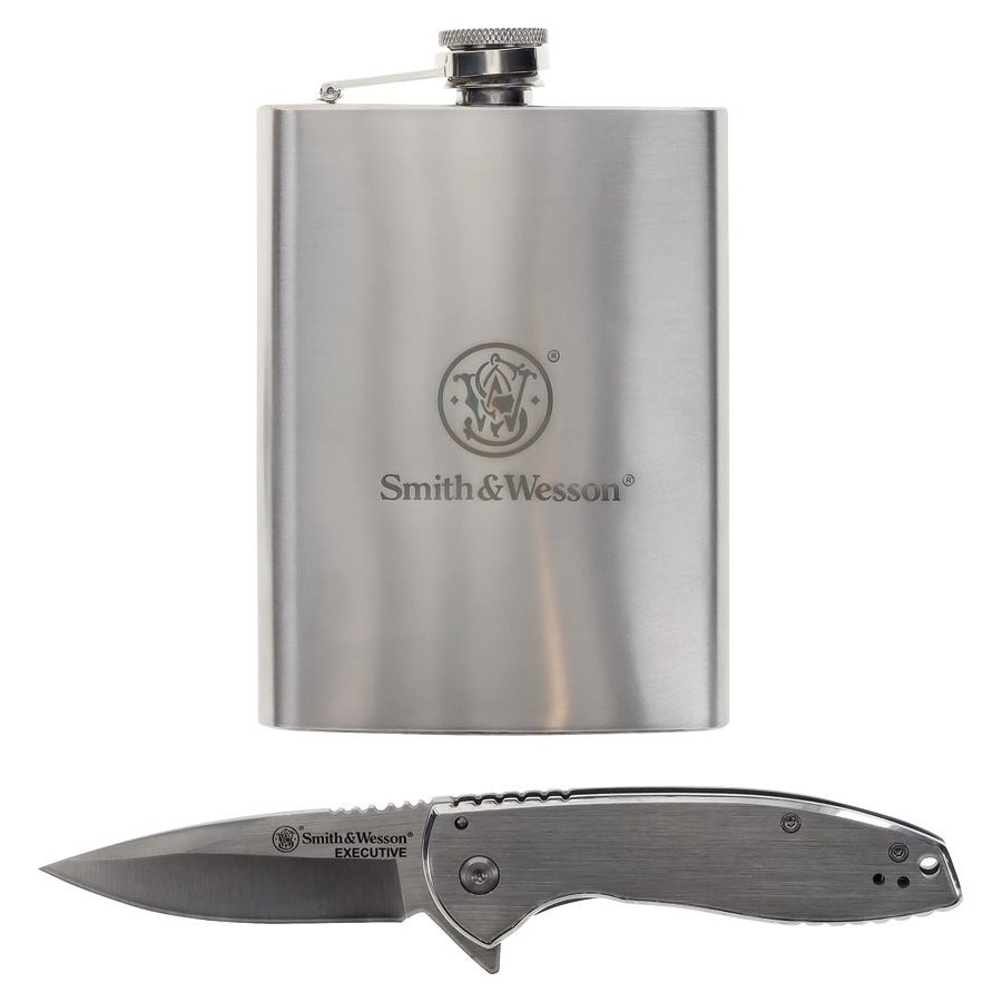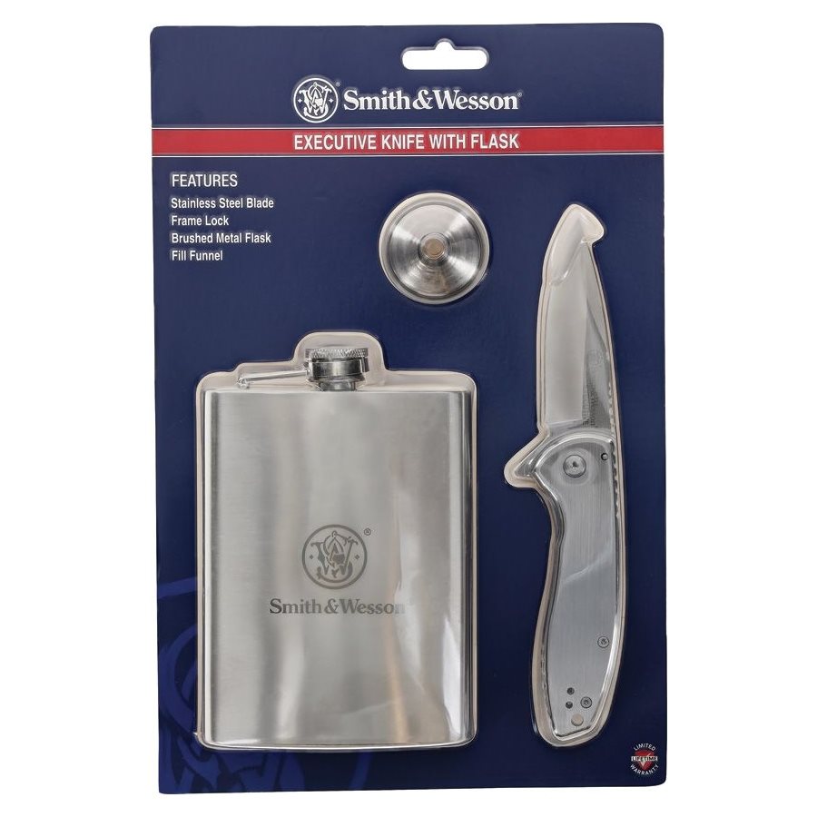 Dárkový set obsahující kompaktní zavírací nůž, placatku a plnící trychtýřek. Další informace