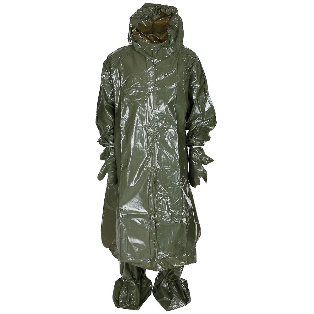 Protichemický oblek JP-75 A. Průvleky na nohy. Nepoužívaný, ze skladů ČSLA. Igelitový balící obal může být zašpiněný nebo poškozený. Další informace