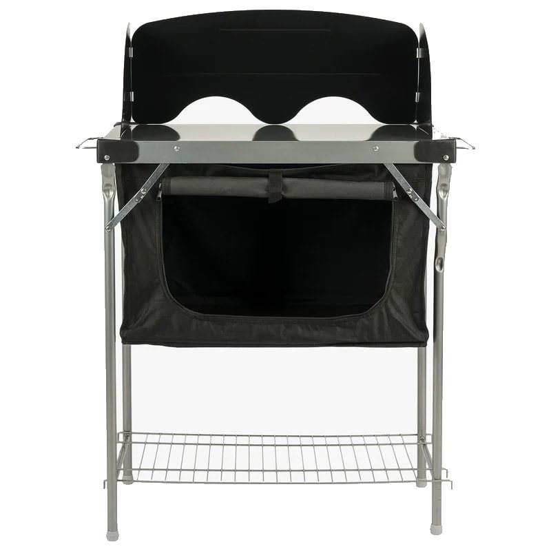 Kuchyňský kempingový stolek, který je idelní pro vaření. Praktická úložná skříňka pod ním pro uložení kuchyňských a potravinářských potřeb při kempování Další informace