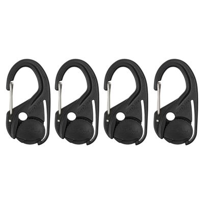 Set čtyř karabin, které slouží k upevňování a napínání materiálu jednoduchým zatažením za provaz.